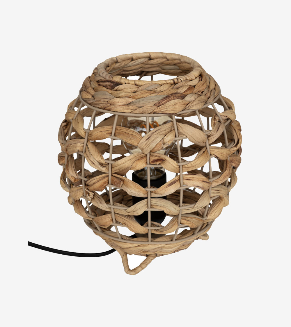 Dotée d'une structure ronde en métal, cette lampe arbore un joli tressage en jacinthe d'eau. Son aspect brut et artisanal conviendra parfaitement à une décoration aux tendances d'ici et d'ailleurs.