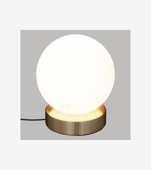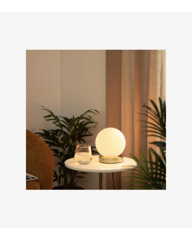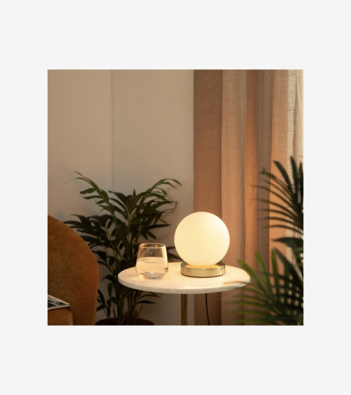 Cette lampe boule se distingue par son pied cylindrique en métal au fini laiton et sa boule en verre sablé. Sophistiquée, elle vous procurera une lumière plus ou moins blanche en fonction de l'ampoule choisie et elle se mariera aussi bien avec du bois que du métal. Un luminaire facile à vivre !