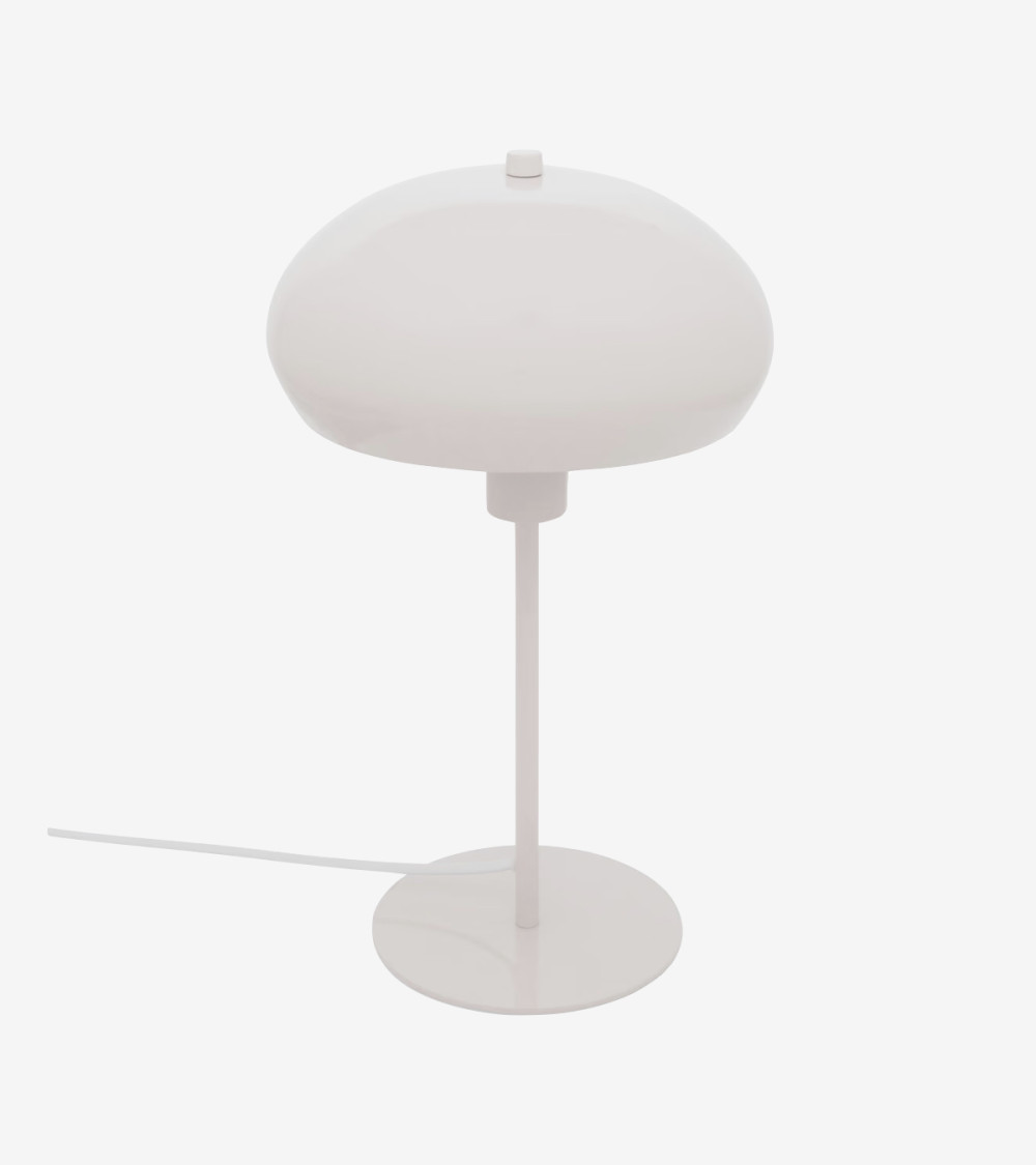 La lampe champignon à poser séduira les adeptes d'un style vintage en matière de déco. Conçue en acier blanc au fini brillant, cette lampe de taille harmonieuse se distingue par son abat-jour en forme de canopée aux contours organiques. Installez cette lampe sur un bureau en bois ou sur une console et ajoutez une ampoule d'un blanc chaud pour profiter d'une ambiance chaleureuse.