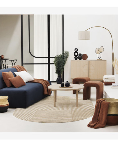 Associez votre lampe à un buffet en bois reprenant des détails en cannage pour créer un rappel.