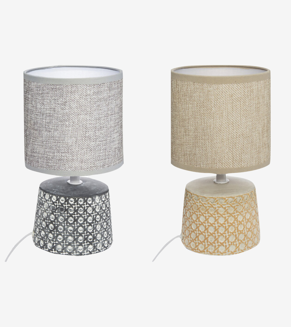 Lampe en Cannage Céramique H.23 cm assortis - Gris ou jaune