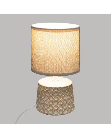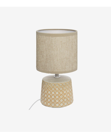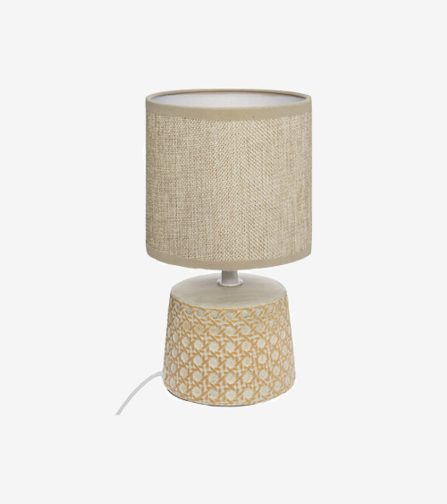 Optez pour cette lampe en lin et céramique, un modèle universel qui s'intègre parfaitement à tout intérieur. Sa base en grès façon cannage assure stabilité et charme rustique, tandis que son abat-jour en lin diffuse une lumière douce et chaleureuse.