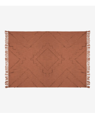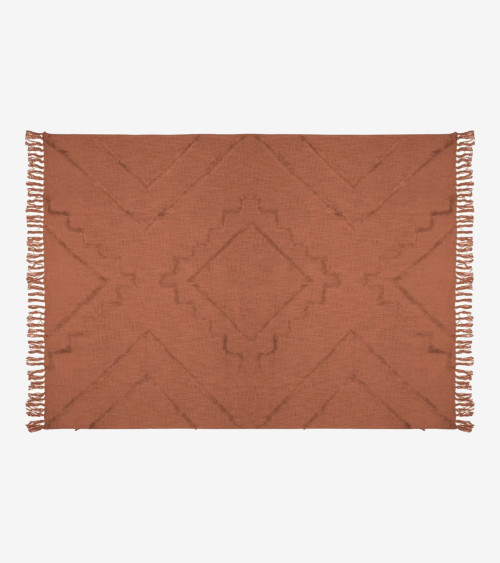 Jeté de lit en coton tufté motifs "Inca" Terracotta 130 x 180 cm