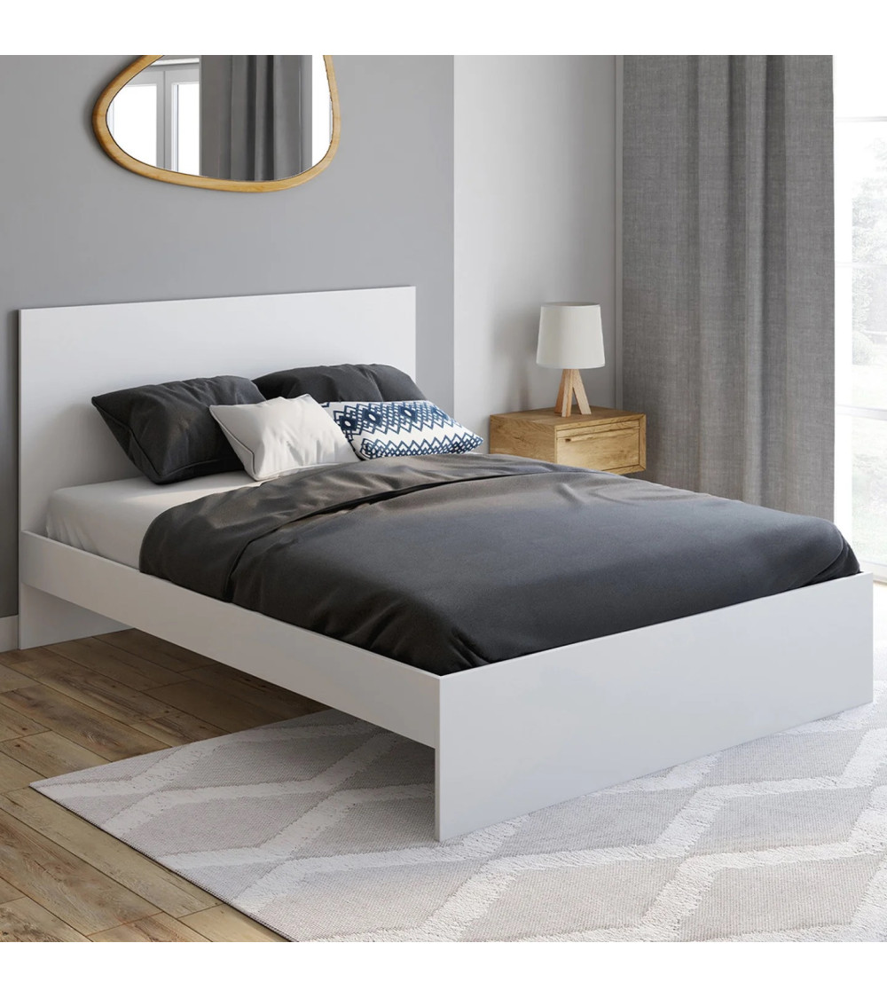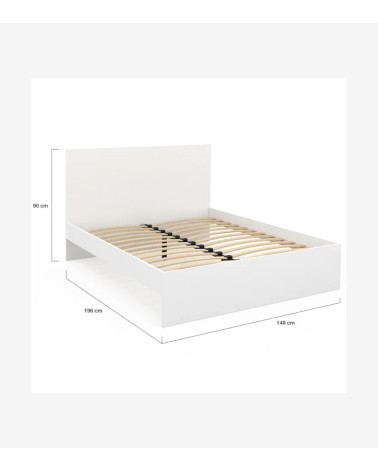 Vous recherchez un lit double adulte pour aménager votre chambre à coucher ? Laissez-vous tenter par ce lit double 140x190 cm, pour de belles nuits douces. Sa structure blanche en particules de bois apporte de la luminosité à votre pièce. Grâce au sommier 26 lattes, le confort à prix coup de cœur vient à la rencontre d’un style moderne !