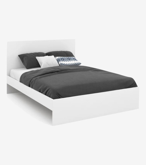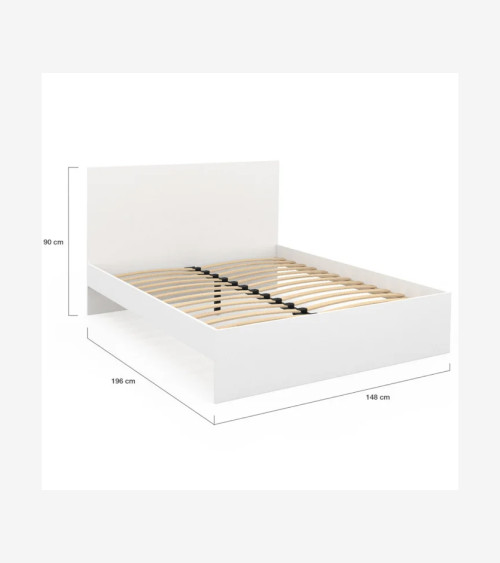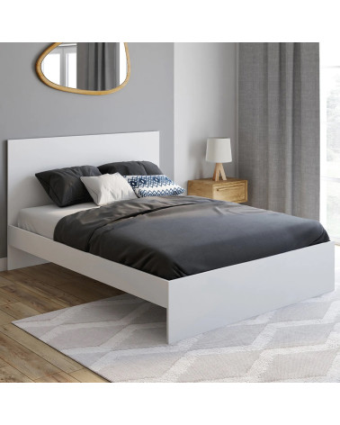 Lit double 140x190 cm avec tête de lit et sommier blanc