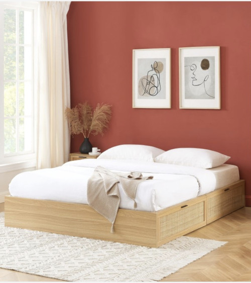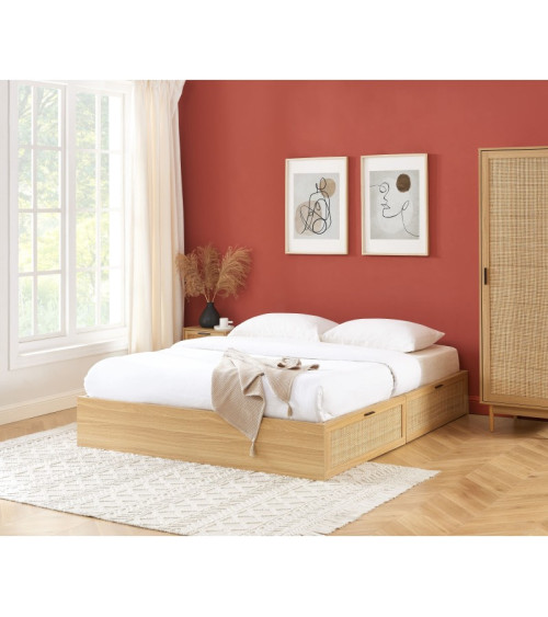 Cadre de lit à tiroirs 140 x 190 cm — en Cannage Rotin