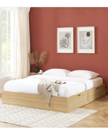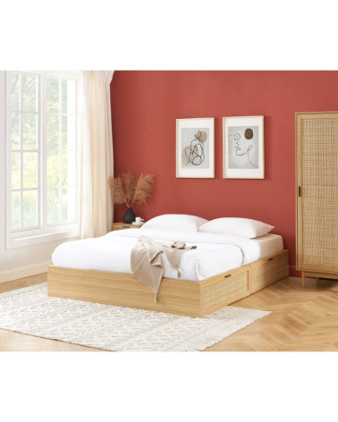 Cadre de lit à tiroirs 140 x 190 cm en Cannage Rotin