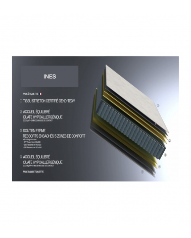 Matelas INÈS 90x190cm - Epaisseur 19cm - 377 RESSORTS ENSACHÉS - 5 ZONES DE CONFORT