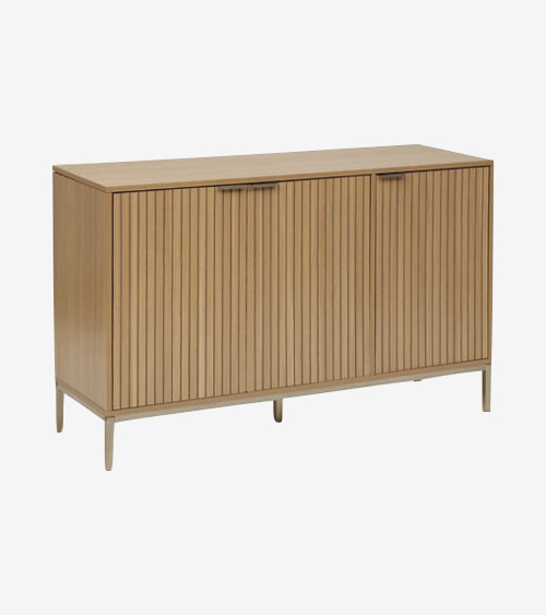 Rangez avec style dans votre salon ou votre chambre grâce à cette commode en bois ! Sublimez la présentation de vos livres et objets décoratifs avec ce buffet design en bois au style brut et naturel. Doté de 3 portes, il offre un espace de rangement optimal pour vos effets personnels et apportera une touche d'élégance à votre intérieur.