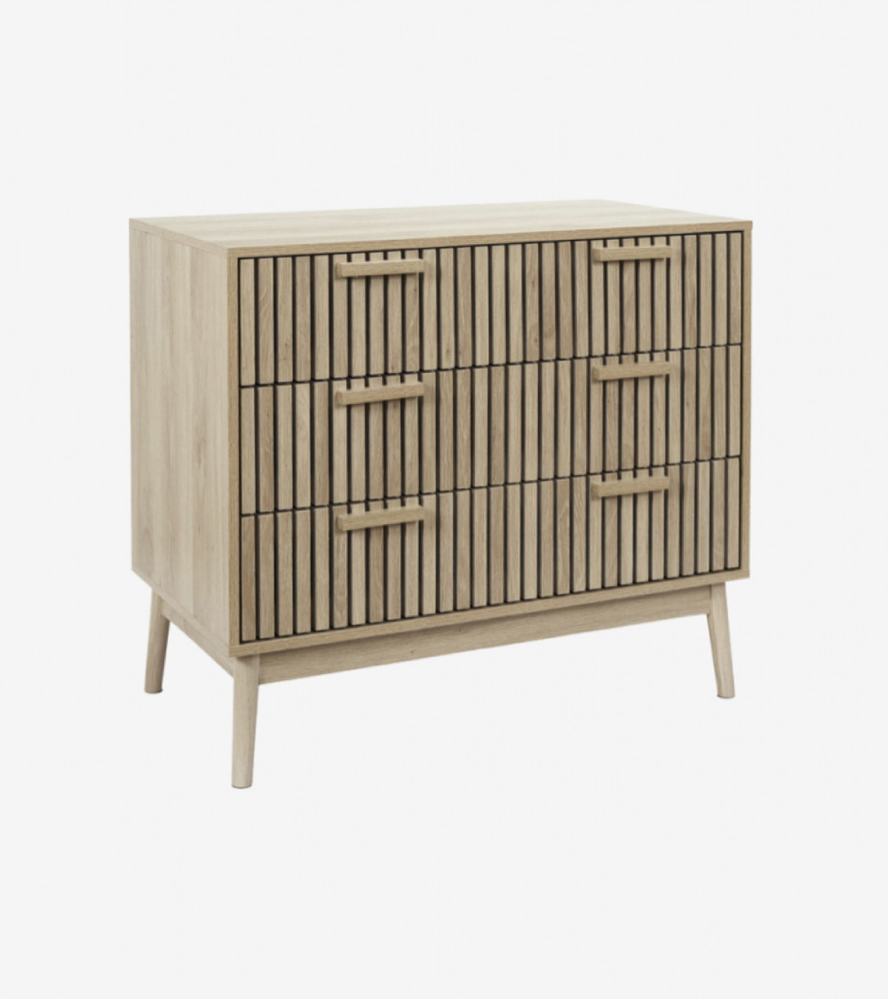 Commode avec 3 Tiroirs effet Rayés en Bois