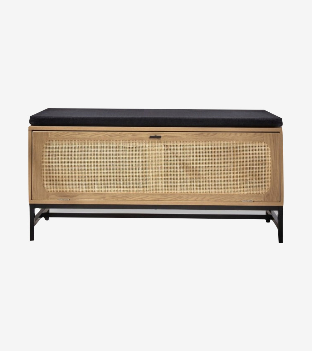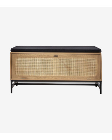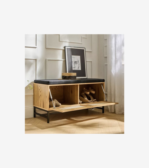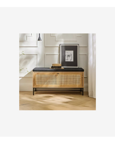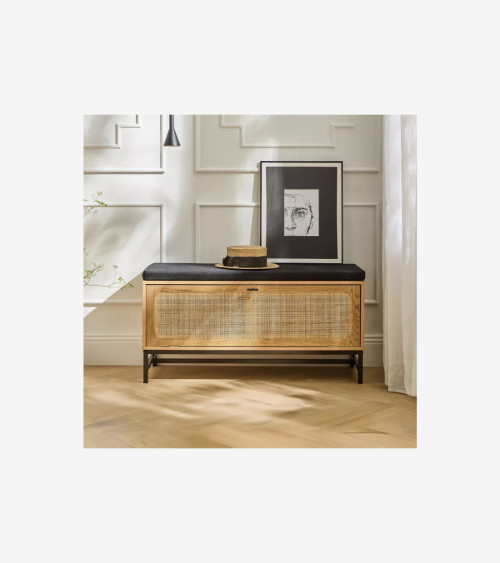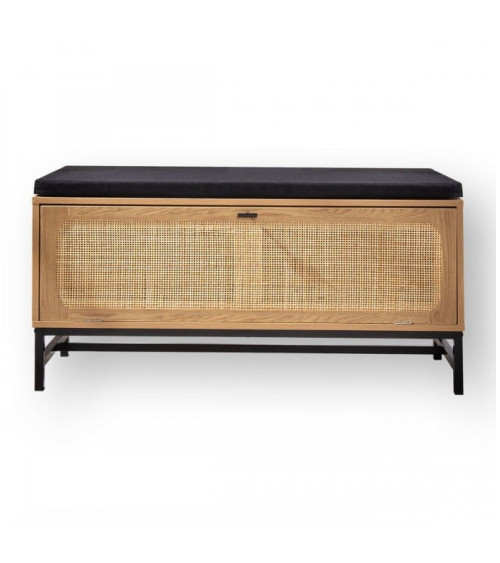 Banc avec Rangement Chaussures et Façade en Rotin - L100 cm x l 38 cm x H 47 cm