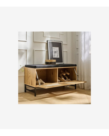 Notre Banc avec rangement chaussures et façade en rotin allie à la fois design moderne et rangement pratique ! Vous en avez assez de voir vos chaussures trainer en permanence ? Voici notre solution pour qu'elles soient ranger et cacher tout en apportant une touche de décoration à votre intérieur. Le banc vous permettra également grâce à son coussin de vous asseoir lorsque vous vous chaussez ou déchaussez.