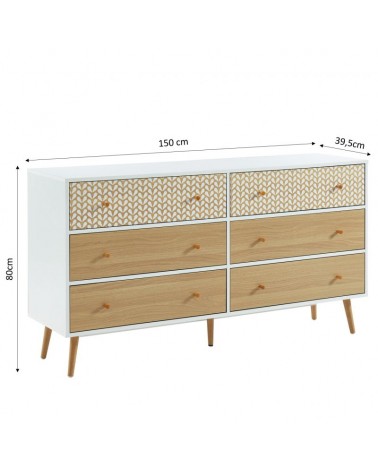Commode effet Chêne 6 Tiroirs - Blanc L. 39.5 x P. 150 x H. 80.00 cm