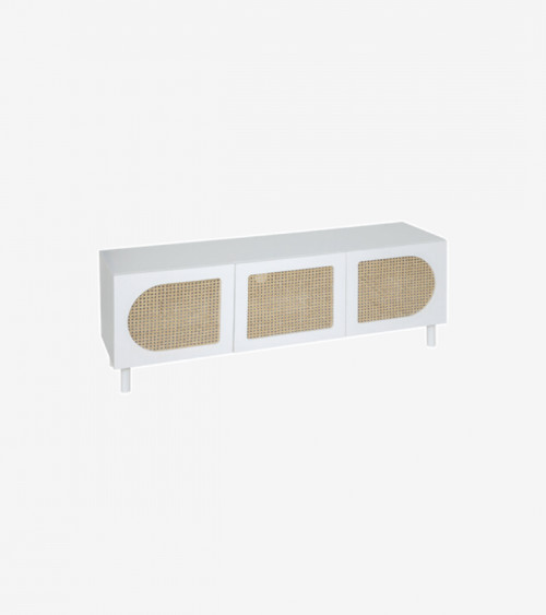 Ce meuble télé en bois avec deux tiroirs est à la fois moderne, résistant et pratique, idéal pour embellir votre chambre ou votre salon.