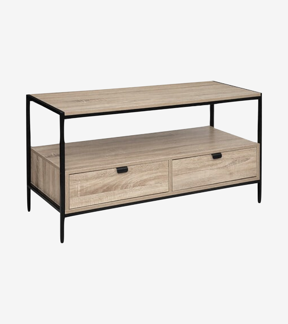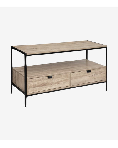 Meuble TV 2 Tiroirs coulissants en Bois et Métal Noir