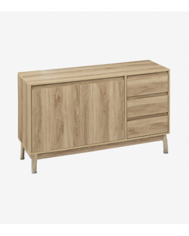Buffet avec 2 Portes et 3 tiroirs en Effet Chêne Naturel