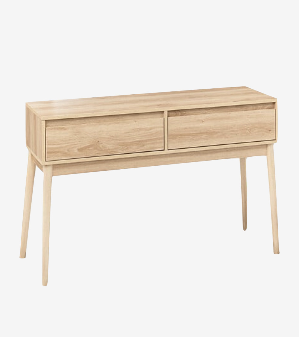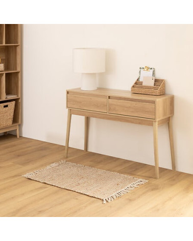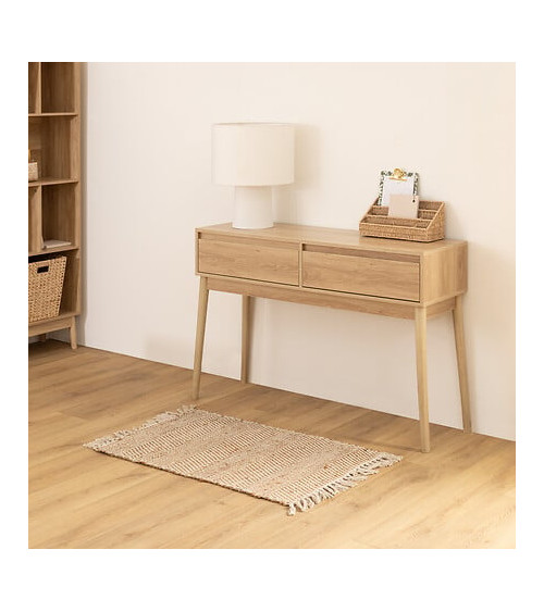 Le design élégant de cette console s'intègre parfaitement dans une ambiance naturelle ou scandinave, avec sa finition bois et naturelle qui apporte une touche de luminosité et de chaleur à votre intérieur.
