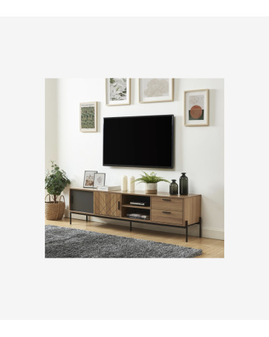 Vous recherchez un meuble TV à la fois élégant, fonctionnel et au design industriel affirmé ? Ne cherchez pas plus loin que ce meuble TV ! Ce meuble TV, aux dimensions L180 x P40 x H50 cm, offre un espace de rangement spacieux et pratique pour votre télévision, vos appareils audio-vidéo et vos accessoires. Son design industriel chic apportera une touche de caractère à votre salon.