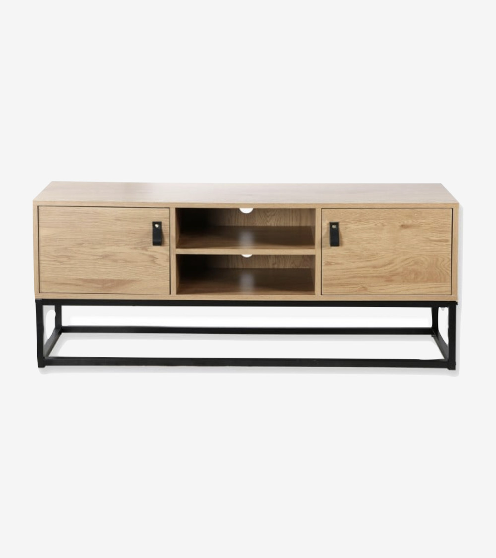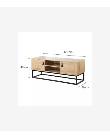 Meuble TV décor chêne 2 portes et niche Centrale - L 120 cm X P 39 cm X H 48 cm.