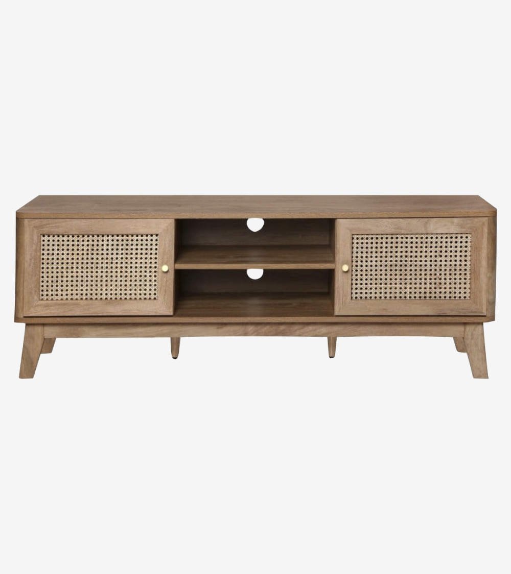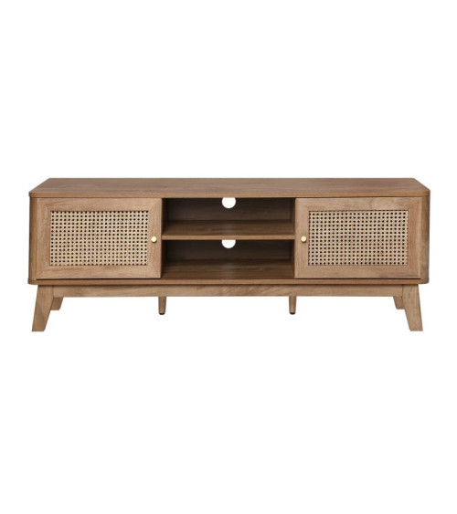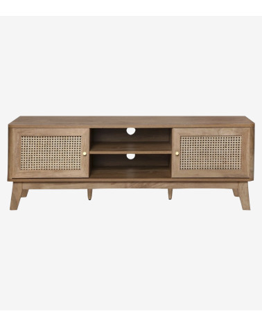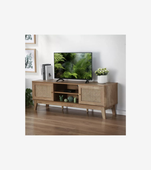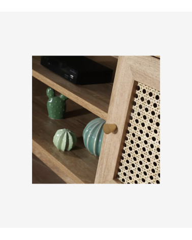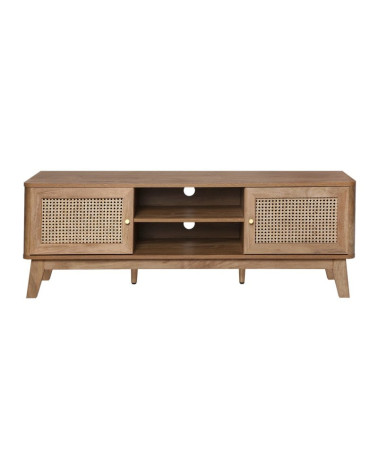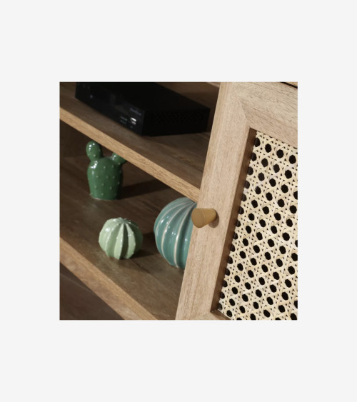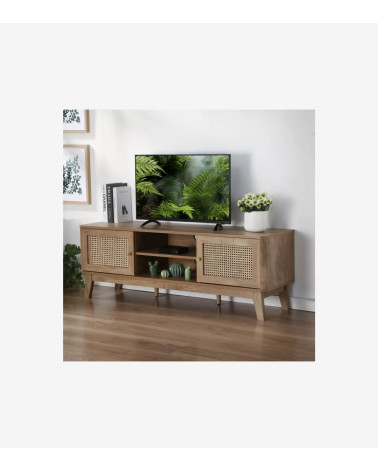 Meuble TV avec 2 portes et cannage en rotin, apportant une touche naturelle et élégante à votre espace de divertissement.