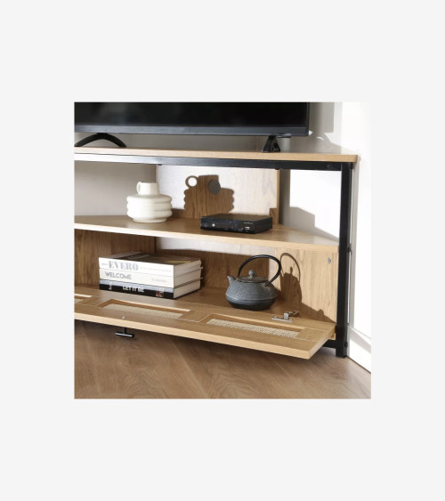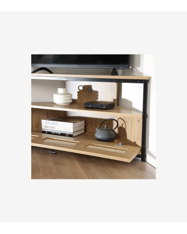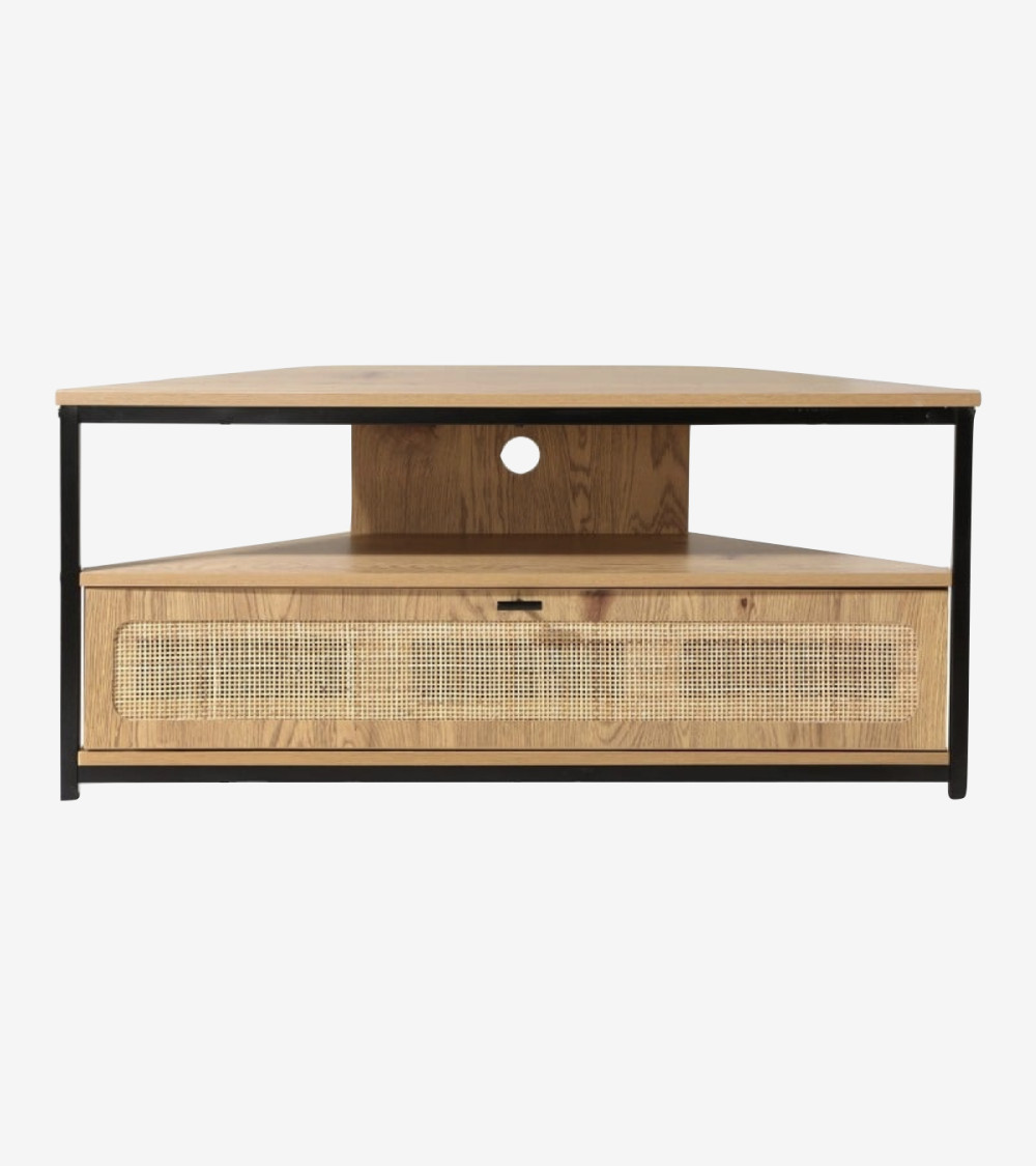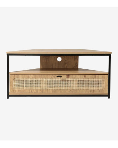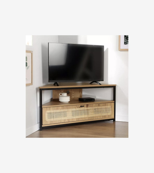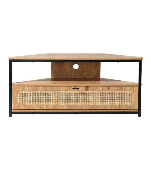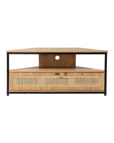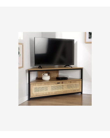 Meuble TV d'Angle 1 Porte avec Cannage Rotin L 100 x l 30 x H 45 cm