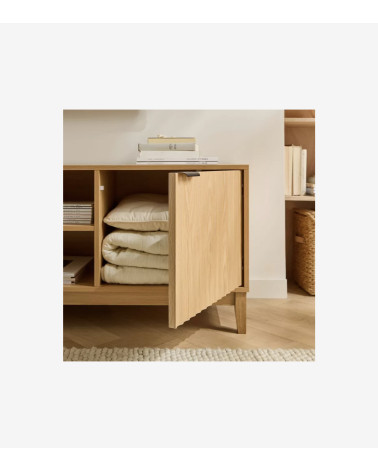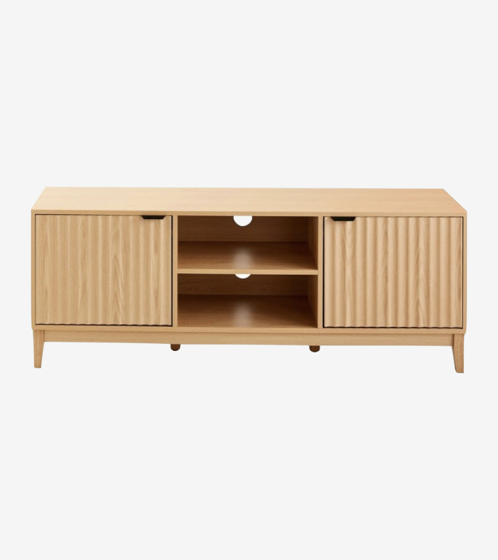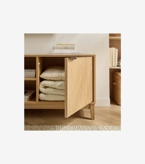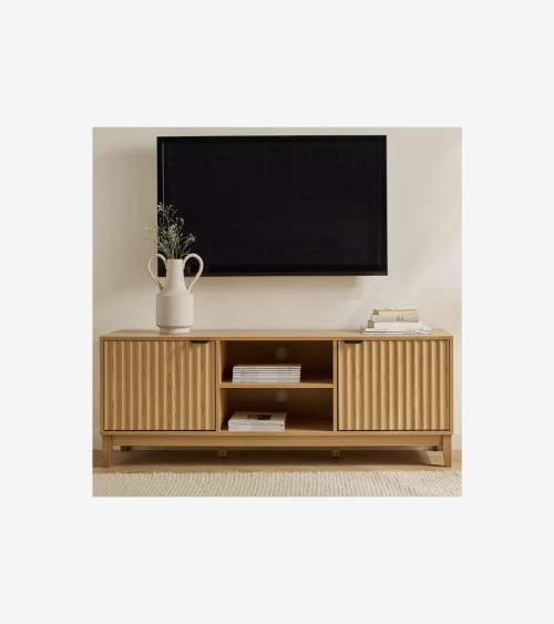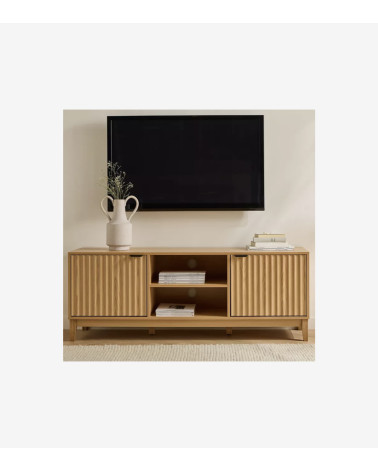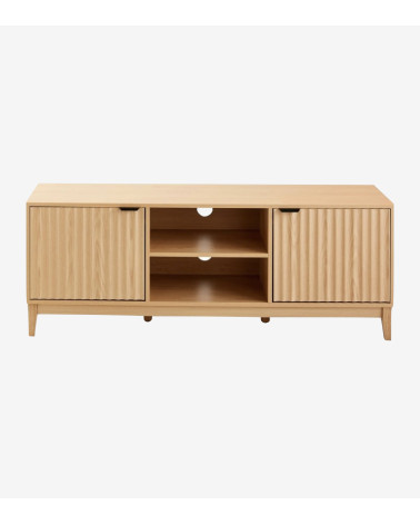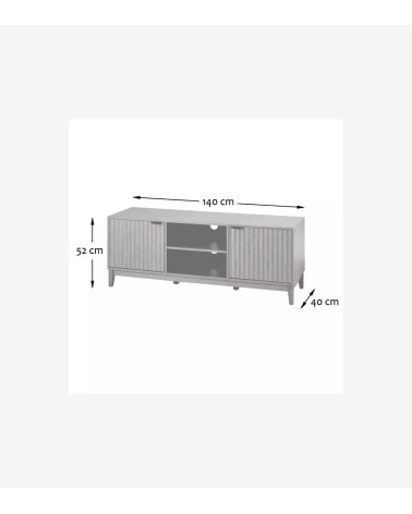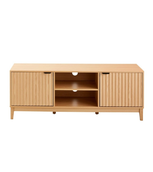 Meuble TV 2 niches et 2 portes aux façades effet vague L 140 x l 40 x H 52 cm