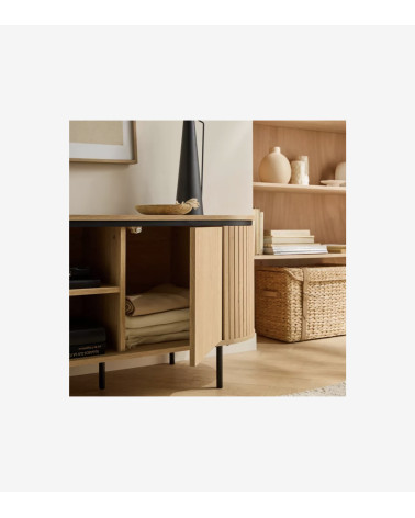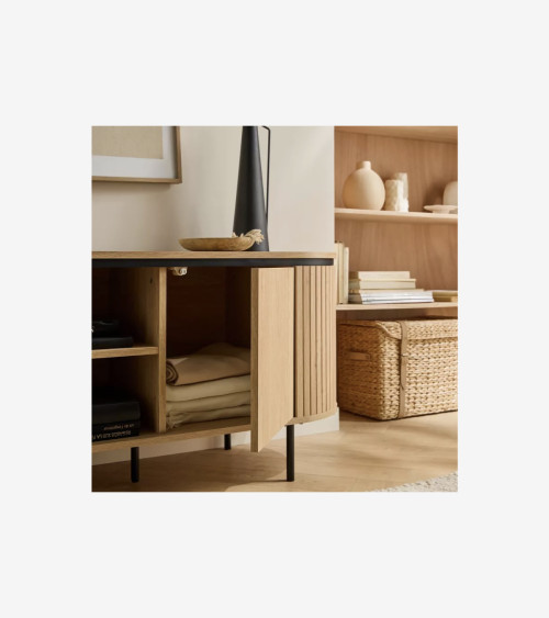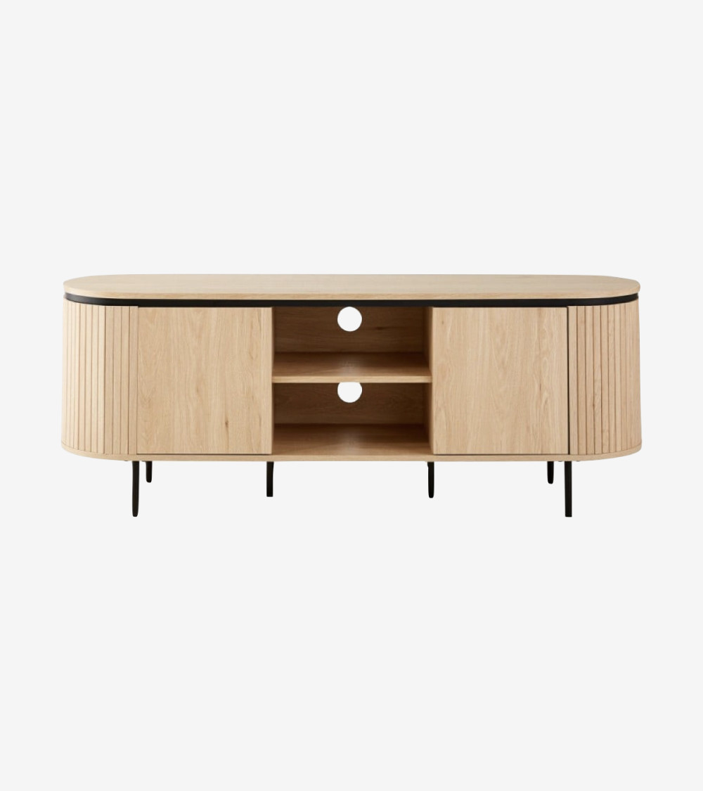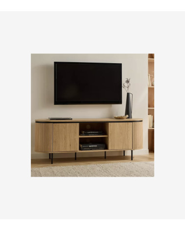 Meuble TV 2 portes avec côtés effet rainuré L 150 x l 40 x H 55 cm