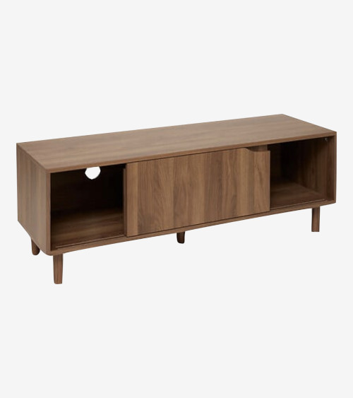 Finition bois marron qui s’accorde aux ambiances modernes ou classiques, la silhouette reste sobre et met en valeur l’écran sans alourdir la pièce à vivre.