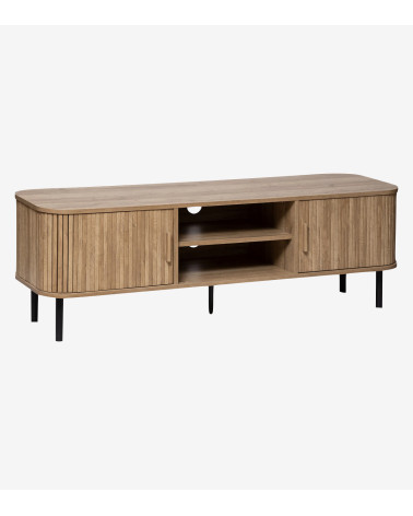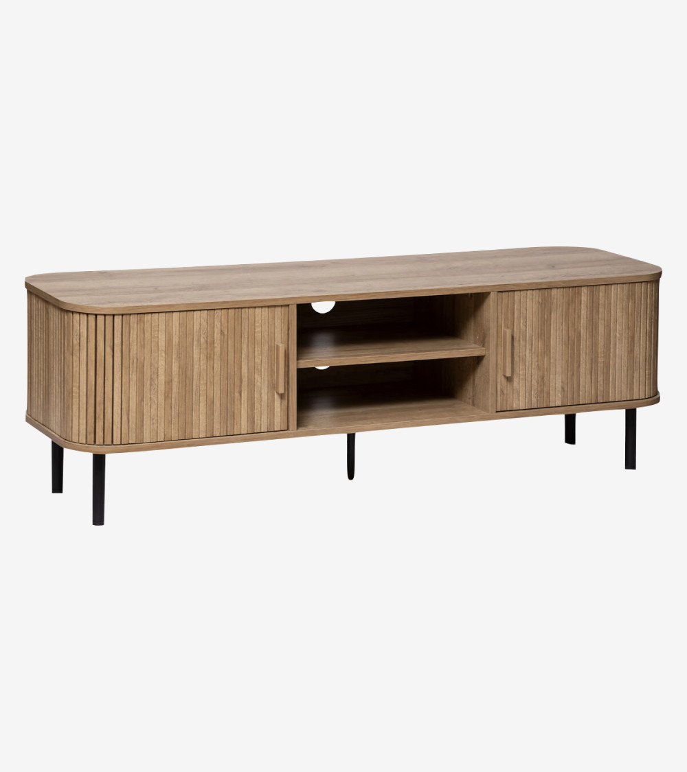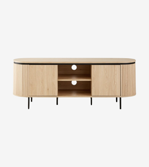Meuble TV arrondie avec 2 Placard et 2 Étagères - effet Chêne L. 140 x P. 40 x H. 53 cm