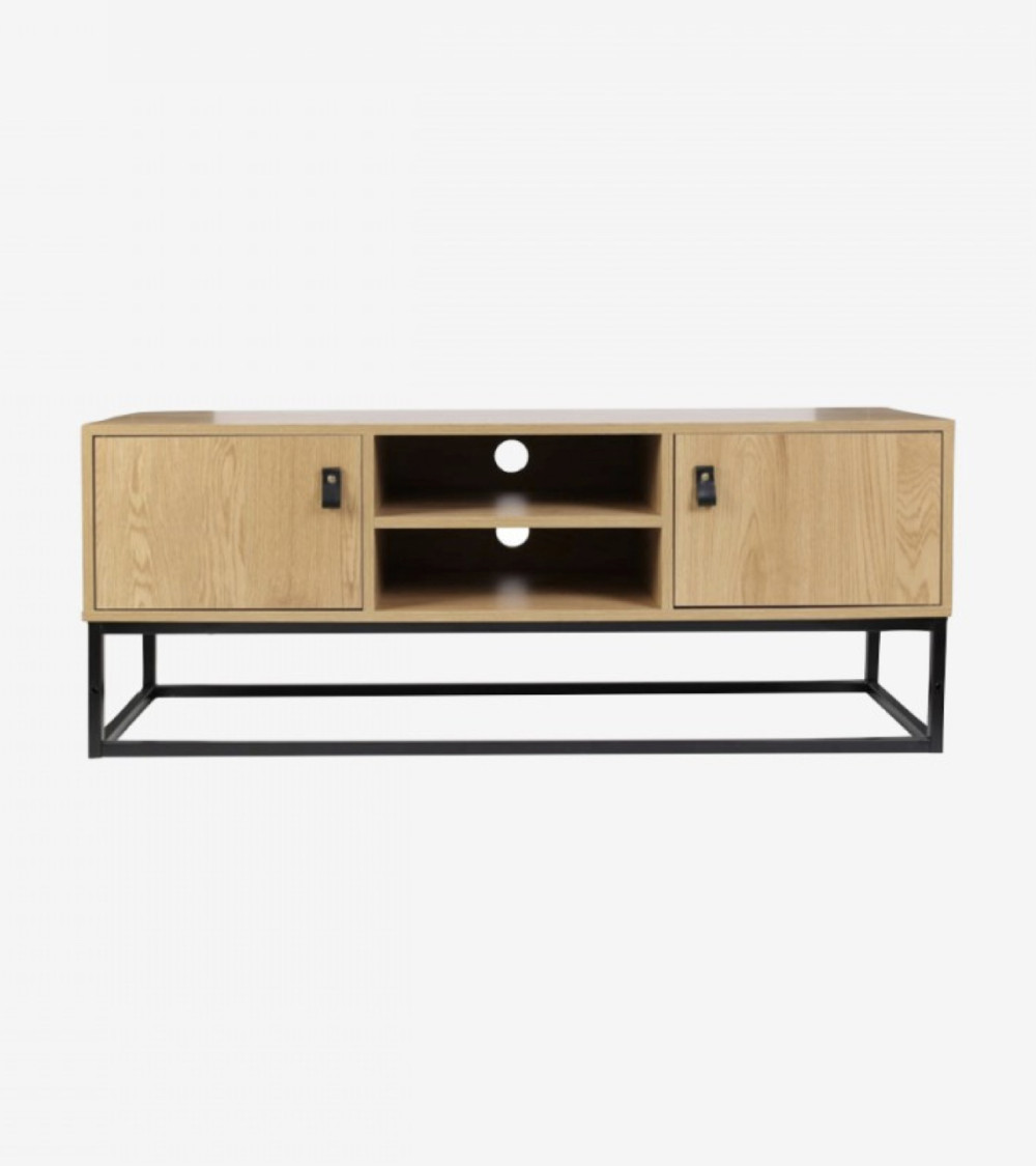 Meuble TV 2 Portes et 2 Étagères - Bois et Métal Noir L. 117 x P. 39 x H. 48 cm