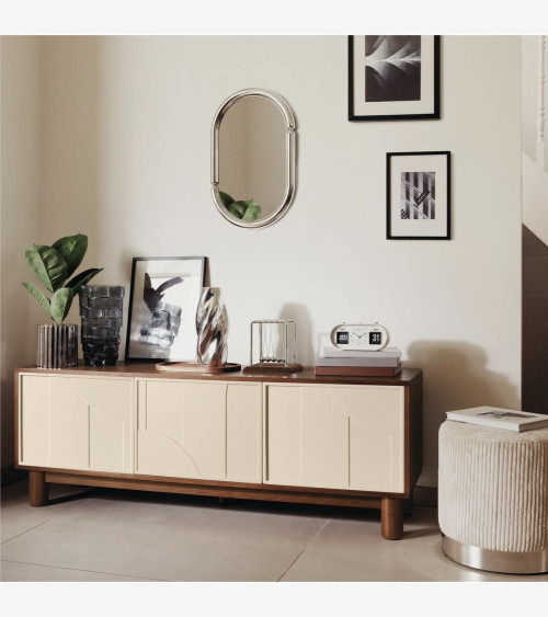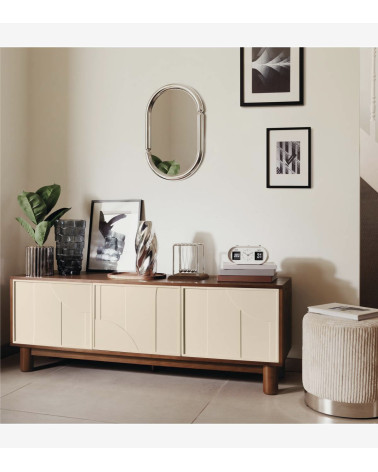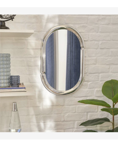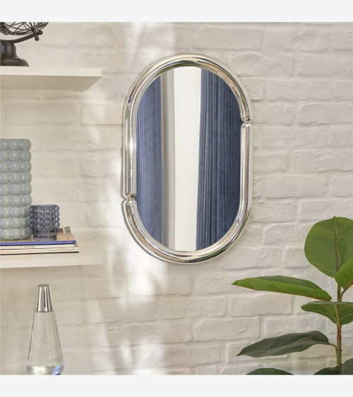 Ce miroir de forme ovale se distingue par son cadre en plastique avec un effet chromé. Sa forme déstructurée lui donne beaucoup de charme. Installez votre miroir au-dessus d'une console en métal et profiter d'un ensemble pratique.