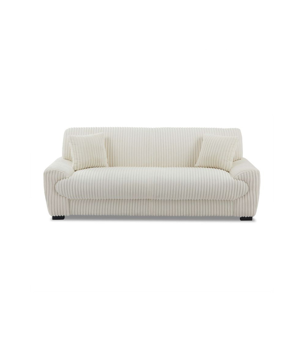 Canapé droit fixe 3 places velours côtelé beige