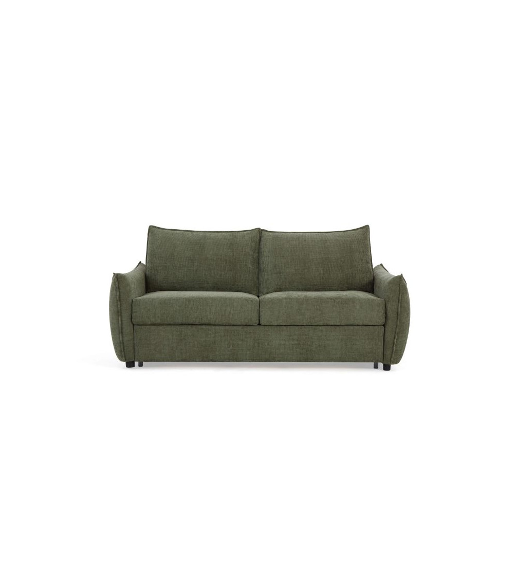 Canapé droit convertible express 3 places tissu chenille vert