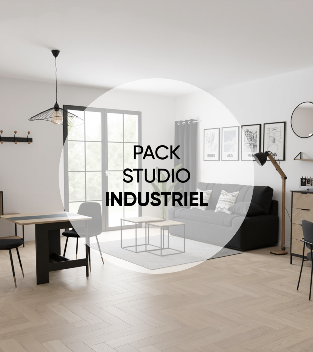 N'oubliez pas de sauvegarder votre personnalisation pour pouvoir l'ajouter au panier.Le Pack Studio Industriel a été créé par nos décoratrices d’intérieurs.