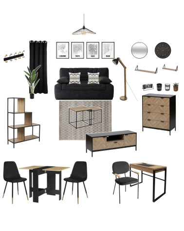 Ce pack de meuble studio industriel a été conçu pour répondre aux besoins des petits espaces tout en affirmant un style fort. Grâce à ce pack de mobilier complet, vous disposez de tous les essentiels pour créer un intérieur harmonieux, fonctionnel et moderne, sans multiplier les achats ni dépasser votre budget.