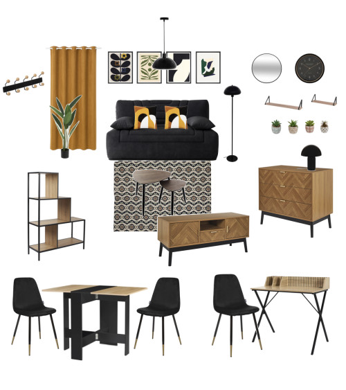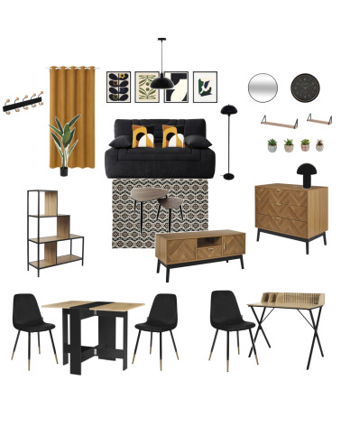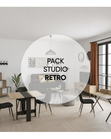 Ce pack de meuble studio rétro a été conçu pour apporter du style et de la personnalité aux petits espaces. Grâce à ce pack de mobilier complet, vous disposez de tous les éléments essentiels pour aménager un studio fonctionnel, harmonieux et plein de charme, sans multiplier les achats ni dépasser votre budget.