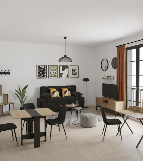 Ce pack de mobilier rétro est idéal pour un premier logement, un investissement locatif ou un aménagement différenciant et tendance.