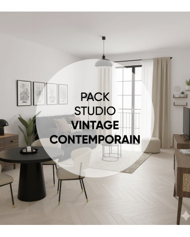 N'oubliez pas de sauvegarder votre personnalisation pour pouvoir l'ajouter au panier.Le Pack Studio Vintage Contemporain a été créé par nos décoratrices d’intérieurs.