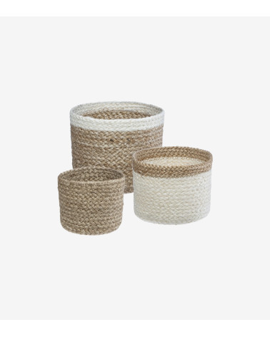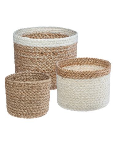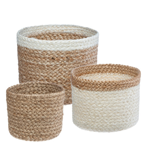Lot de 3 paniers jute blanc