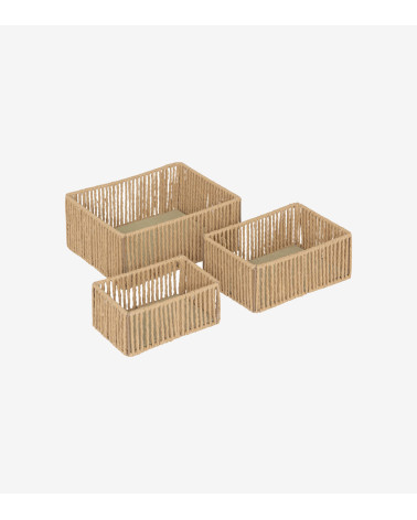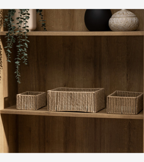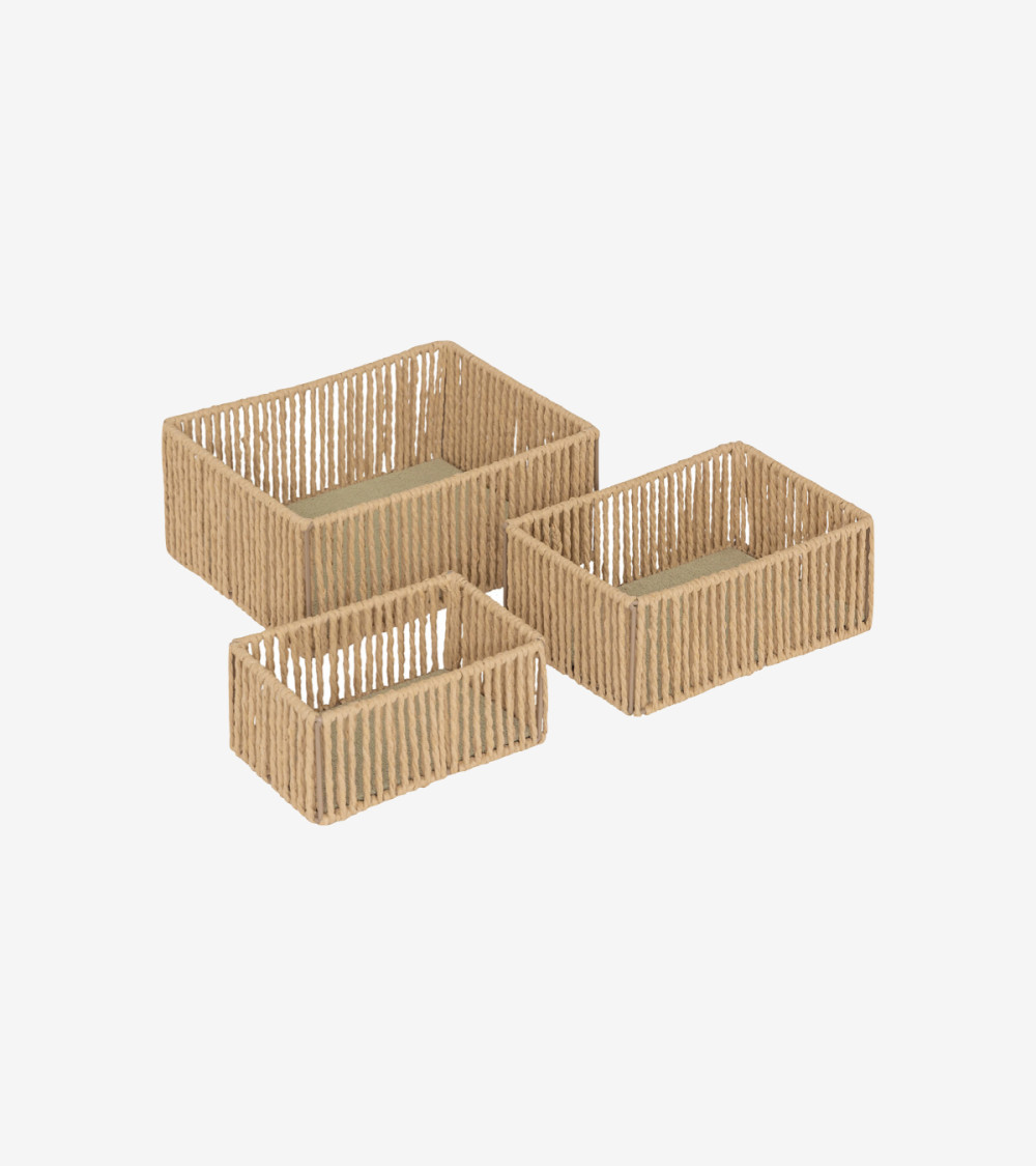 Idéal pour créer du rangement dans un style authentique, le lot de 3 paniers est composé de paniers rectangulaires de tailles complémentaires. Habillés de papier tressé, ils seront parfaits sur des étagères ou sur une console d'entrée pour servir de vide-poches.