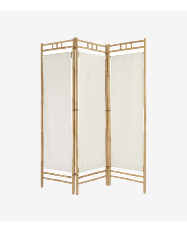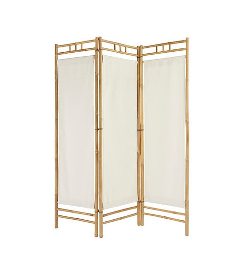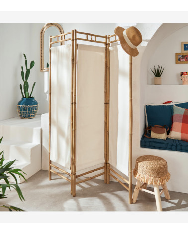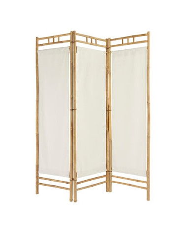 Naturel et authentique, le paravent vous permettra de profiter d'un coin intime dans une chambre à coucher ou de créer une séparation d'espace dans la pièce de votre choix. Il est composé d'une structure en bambou et ses trois panneaux en tissu blanc sont opacifiants.