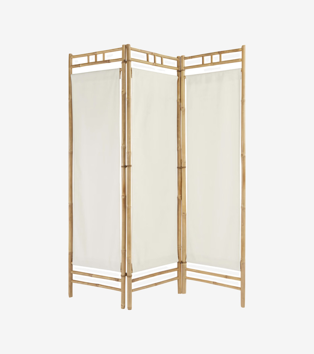 Paravent L 1355 x P 3 x H 170 cm bambou et tissu blanc