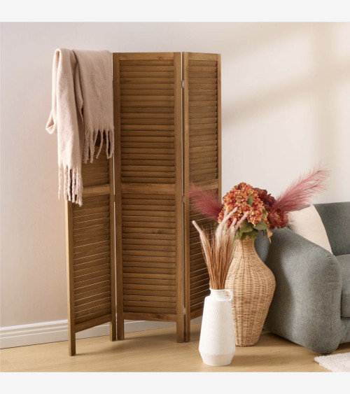 Avec son effet persienne, il est idéal pour séparer une pièce afin de délimiter deux espaces. Très pratique, les trois panneaux en bois de paulownia sont pliables pour vous permettre de gagner de la place lors du stockage. Associez votre paravent à une délicate guirlande lumineuse afin de créer une ambiance douce et délicate.