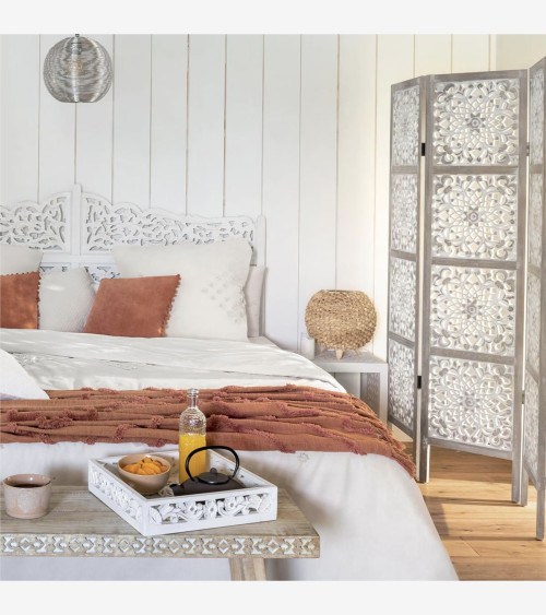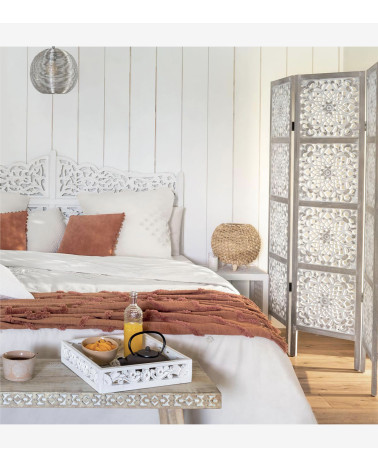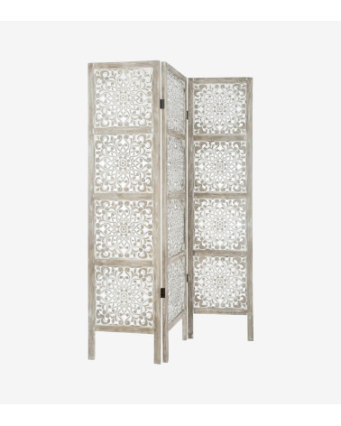 Ce paravent est pratique pour délimiter l'espace et structurer le volume dans la pièce de votre choix : chambre à coucher, salon, etc. Il s'offre une finition blanchie façon bois cérusé qui sublime ses trois panneaux aux motifs venus d'ailleurs.