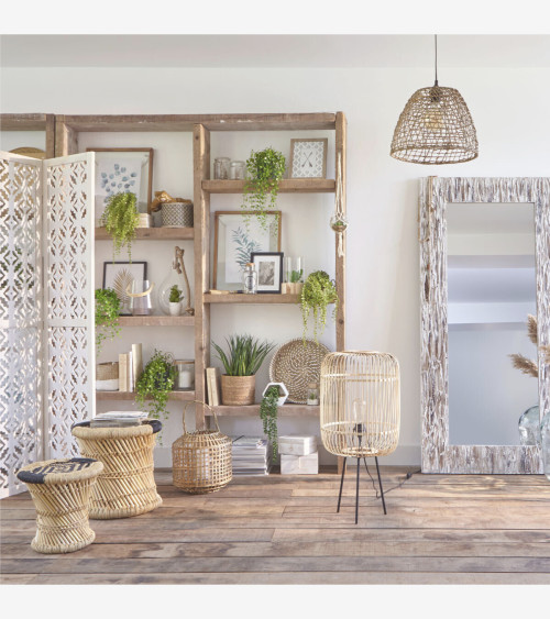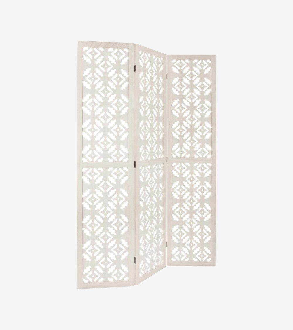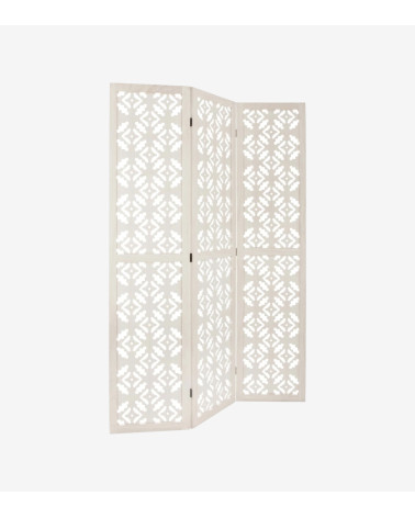 Ce paravent en bois à trois panneaux, utile pour délimiter deux espaces, conjugue fonctionnalité et style. Selon le modèle choisi, il est orné d'un design végétal contemporain ou de motifs d'inspiration ethnique. Grâce à ses parois ajourées, il laisse circuler la lumière tout en offrant plus d'intimité.