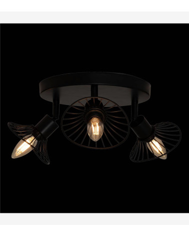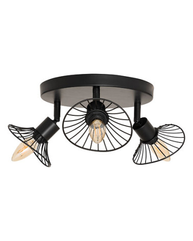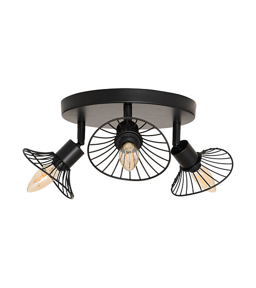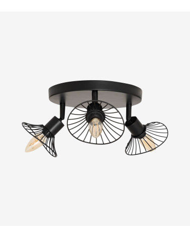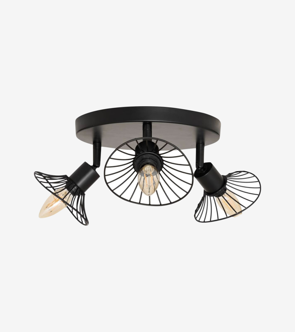 Entièrement réalisé en acier teinté, il est composé d'une base cylindrique à fixer au plafond, sur laquelle s'articulent 3 spots orientables. Dotés d'abat-jours en métal filaire qui créeront un jeu de lumière chaleureux, ces spots peuvent être équipés des ampoules de votre choix. Pour un effet déco dans l'air du temps, choisissez des ampoules à filaments, les abat-jours les mettant en valeur. Dans une entrée comme dans une pièce à vivre, vous pourrez orienter les spots en fonction de vos besoins et associer ce plafonnier à du mobilier en bois ou en métal.
