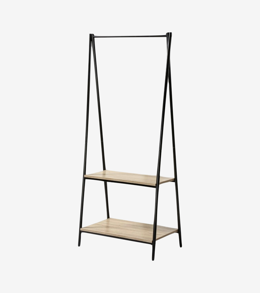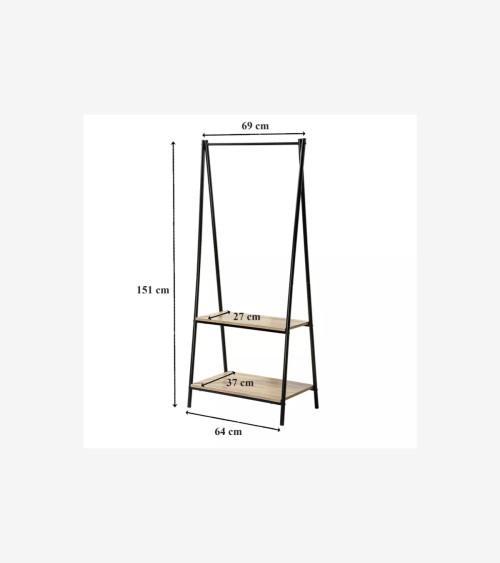 Avec son ossature en acier noir et ses deux étagères en bois mélaminé, ce portant 2 étagères arbore un style industriel qui se fondera parfaitement dans le décor de votre chambre ou entrée. Grâce à sa barre de penderie située suffisamment haut, vous aurez la possibilité de pendre de longs vêtements comme des blousons, des vestes...