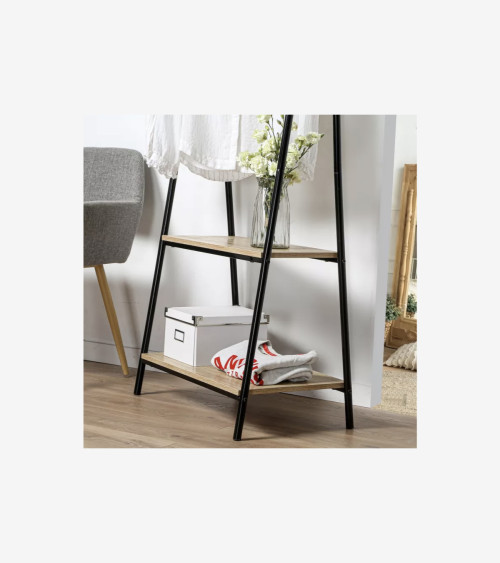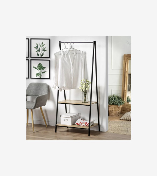 Sur les 2 étagères en bois vous pourrez aussi disposer des boîtes de rangement, des petits accessoires de mode... C'est donc un must-have à avoir chez soi pour ranger sa penderie sans-souci.