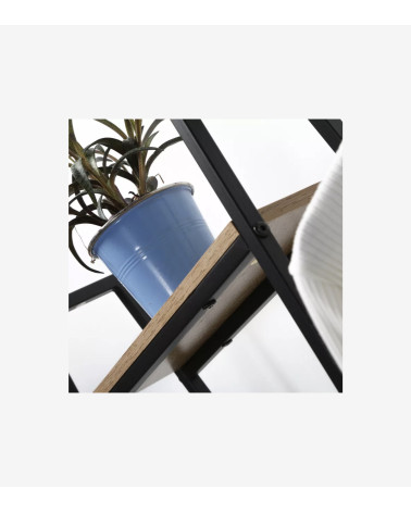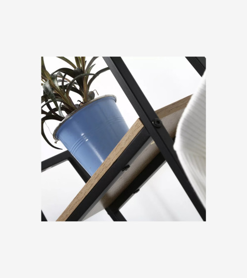 Ce meuble est conçu à partir de panneaux de bois résistants recouverts d'un décor imitation chêne, la structure quand à elle est en métal noir mat. Ces matériaux lui apporte solidité et résistance dans le temps !