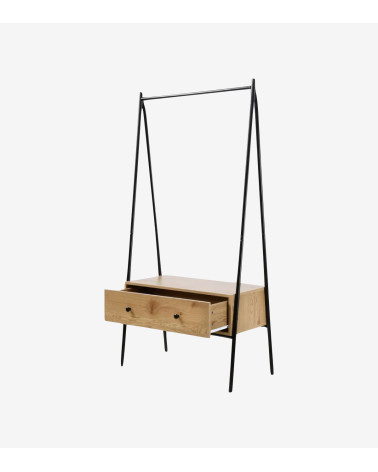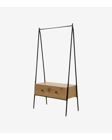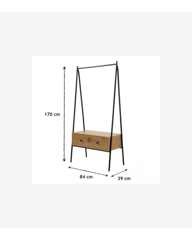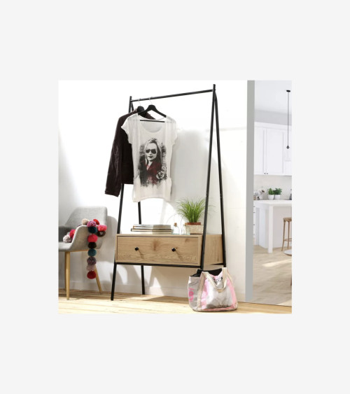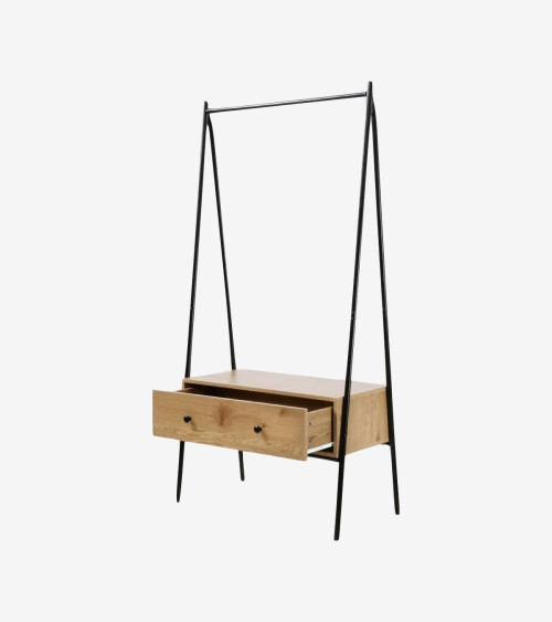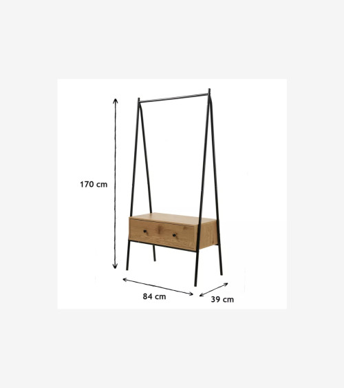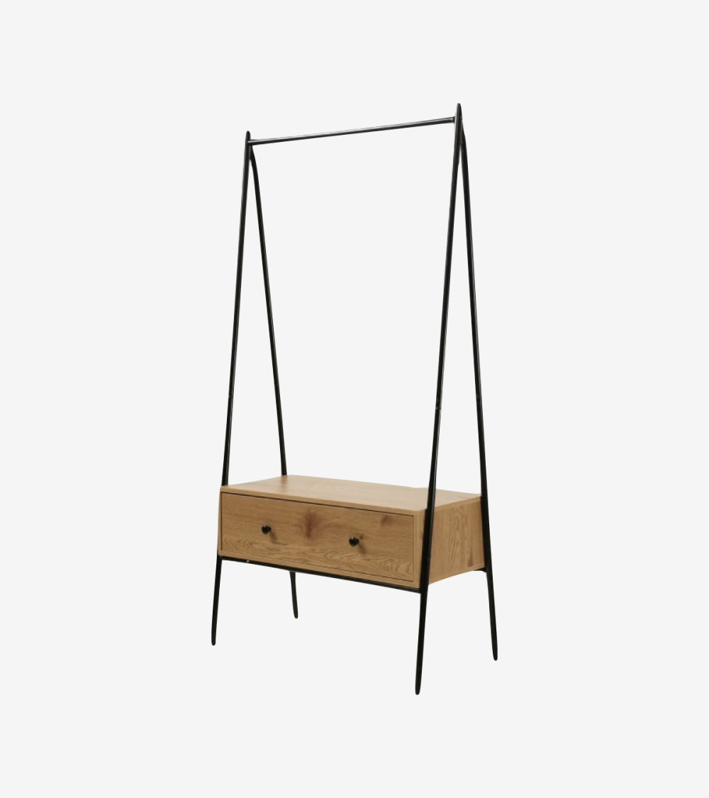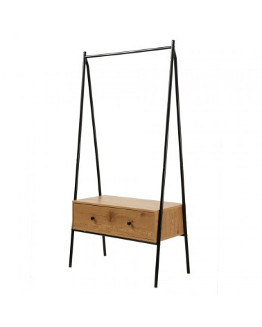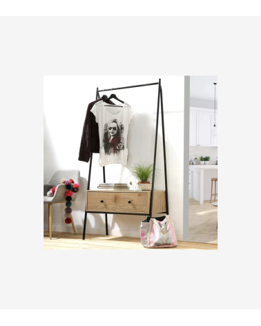 Découvrez notre Penderie en métal Noir avec 1 Tiroir décor Chêne H170 cm, un meuble simple et chic pour habiller une entrée, une chambre ou un dressing !